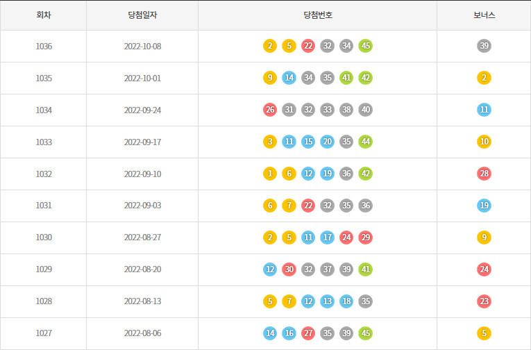 1036회 2022년 10월 8일 추첨 결과를 기다리고 있습니다. 로또 1036회 당첨 예상 번호 10주간 가장 많은 1등 로또번호 모의 추첨번호 통합 출현 횟수 집계 1036회 로또당첨번호 선택 후보. 2 days ago로또복권 운영사 동행복권은 제1036회 로또복권 추첨에서 2 5 22 32 34 45가 1등 당첨번호에 당첨됐다고 8일 밝혔다.